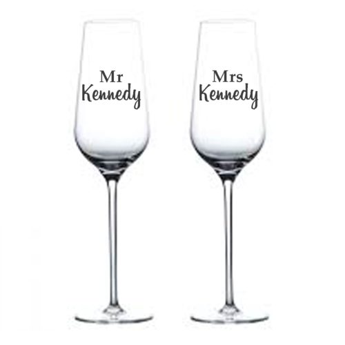 Add Names, Dates or Catch Phrases to your Champagne Flutes to make a unique and special gift for any Occasion