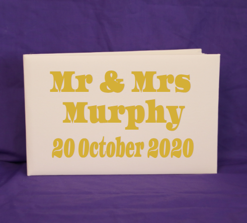 Personalised Wedding Guest Book – Elegant Ivory Guest book with Personalised message (design as pictured) in a choice of colours. A beautiful souvenir of your wonderful day to fill with messages from your guests.